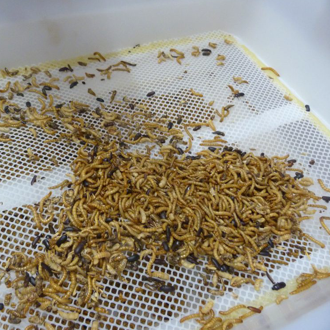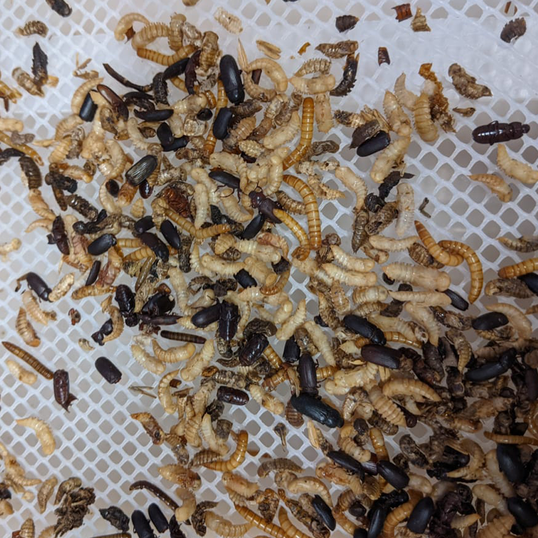 Domaine Enchanteur has a small mealworm farm. Visitors are invited to explore it and learn about the benefits of mealworms for both humans and the planet.Commonly called a “mealworm” because it’s sometimes found at the bottom of a forgotten pantry, it’s actually not a worm — it has legs! It is the larva of the mealworm beetle, a black beetle with remarkable abilities.