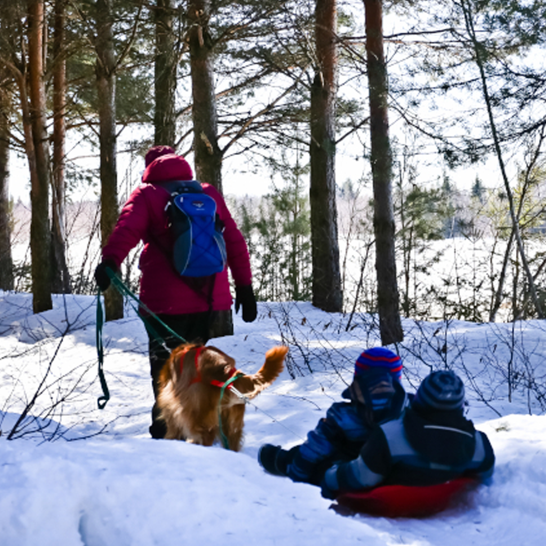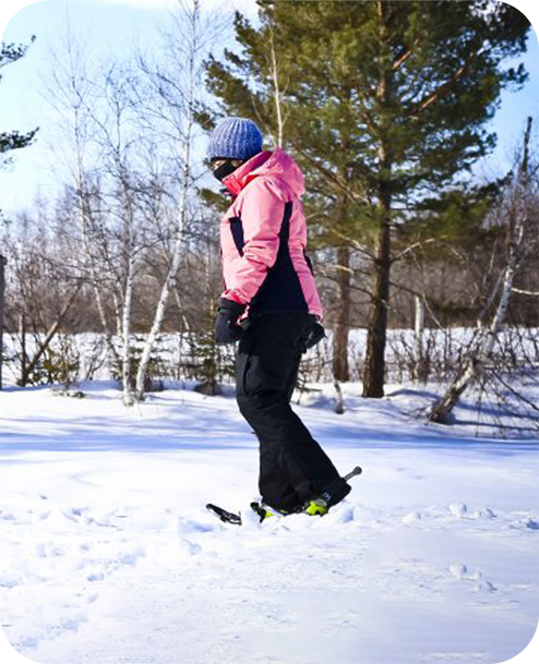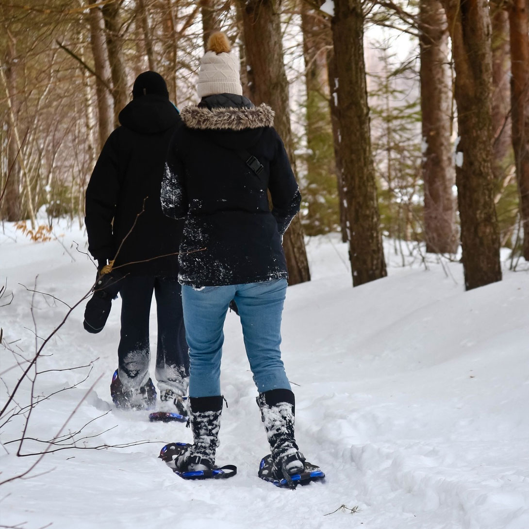 On a trail blanketed in snow, you’ll make your way steadily to the sound of snow crunching beneath your snowshoes. A breath of fresh air, a good cardio workout, and the joy of being outdoors — you’ll love your walk!New! The trail is now a loop of approximately 4.5 km, winding through the forest and passing by the neighboring field.