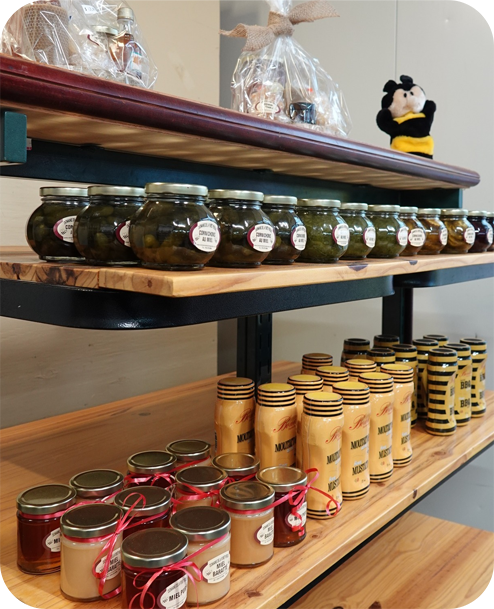 In our shop, you’ll find our honey and mealworm products, as well as items from our partners (maple products, alpaca wool, handmade soaps, etc.), depending on availability.We offer two types of honey: liquid honey and churned honey, which is the same honey but stirred to make it creamier and spreadable.